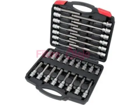 Súprava kvalitných zástrčných predĺžených kľúčov HEX s bitom pevne spojeným s hlavicami so štvorhranom 1/2".